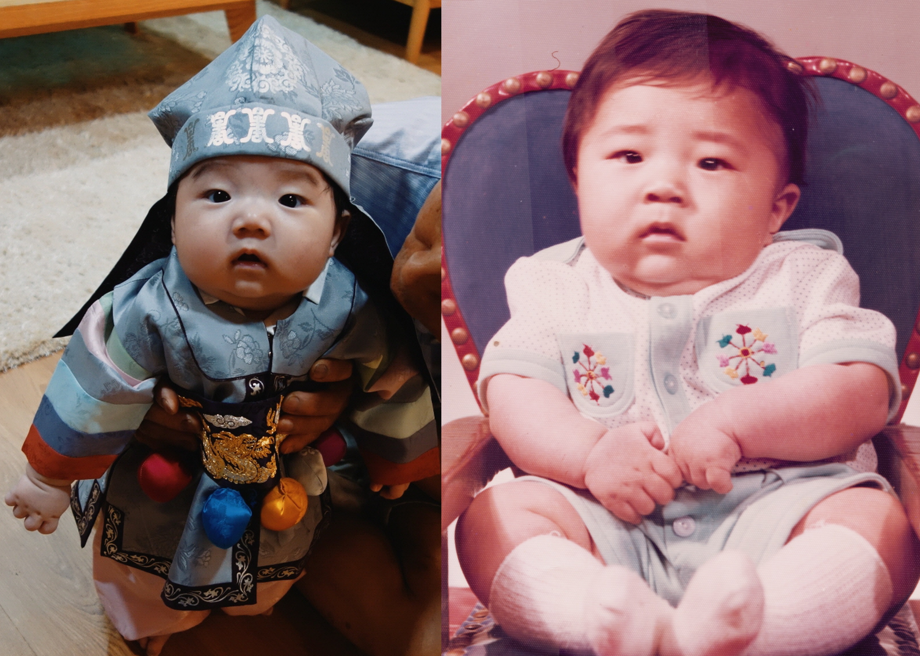삶의 가장 중요한 순간이 있었나요? 어떤 사건으로 인해 그동안의 삶이 크게 변화했던 순간을 가만히 생각해 봅니다. 수많은 순간들이 뇌리를 스치듯 지나갑니다. 내가 선택했던 모든 순간이 모여서 삶의 변화를 만들고 지금의 나를 만들었던 것이니까요. 제게 가장 중요한 순간은 바로 아이가 태어났을 때입니다. 아빠이기 전과 후로 삶이 나뉜다 해도 과언이 아니지요. 나를 꼭 닮은 작고 귀여운 존재가 태어난 순간 세상의 모든 중심이 아이로 바뀌게 됩니다. 꼭 닮았다니. 도대체 얼마나 닮았길래! 왼쪽이 아이이고 오른쪽이 저랍니다. 한복 탈의 후 아닙니다. 참 신기하지요 :)