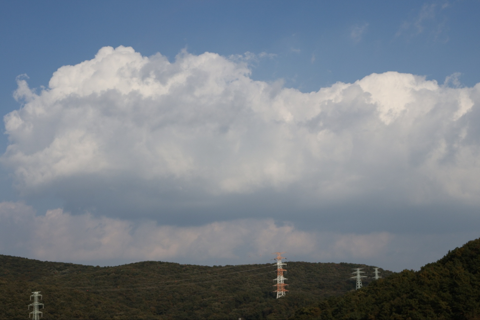 정오쯤 길을 걷다 우연히 만난 뭉게구름이에요. 수증기가 상승기류에 의해 솟구치면서 수직으로 만들어지는 구름. 순우리말 이름으로는 쌘 구름이라고 합니다.