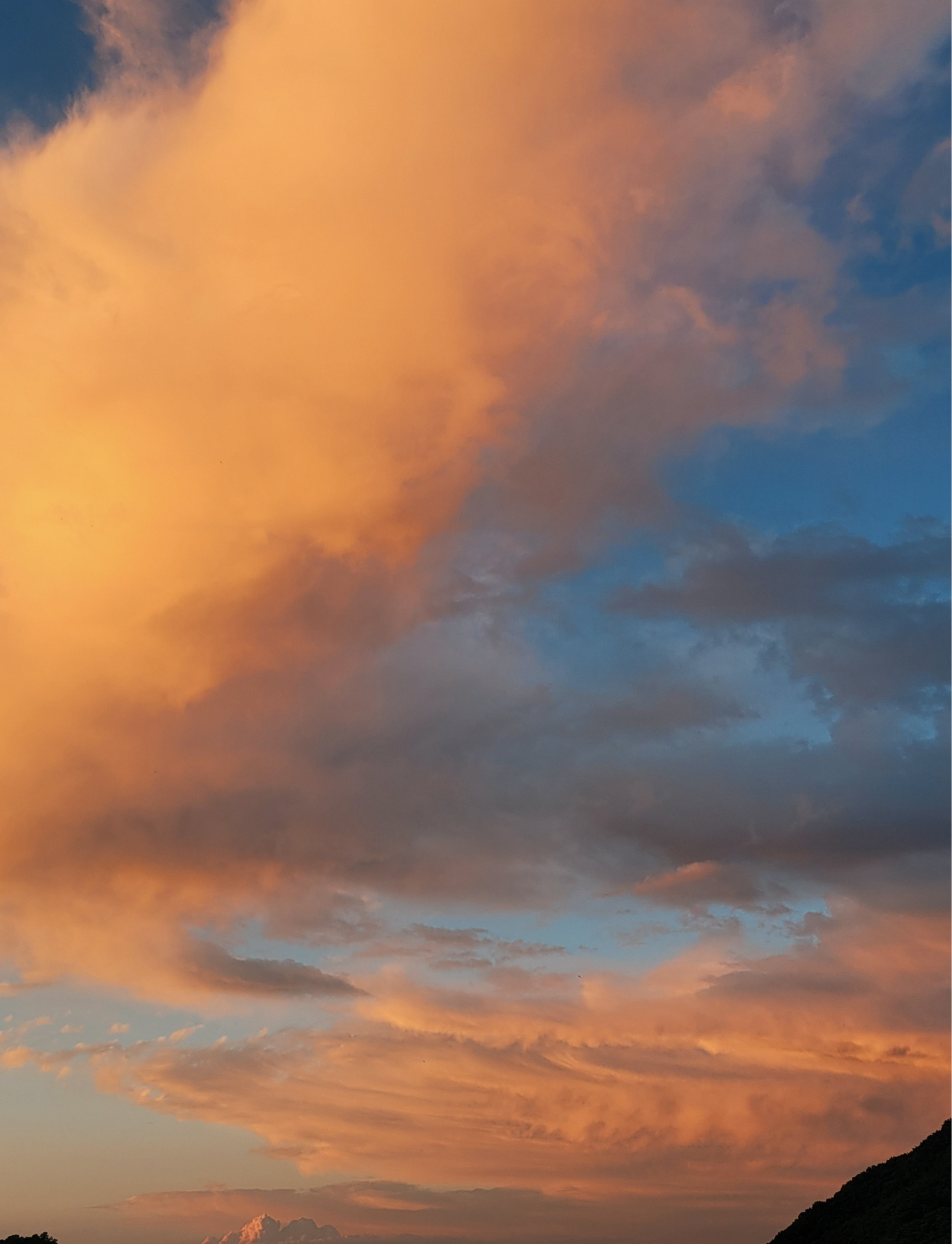 해질녘 양재천 산책길에서 만난 구름. 해질녘에는 노을빛이 구름에 반사되어 더욱 아름다운 풍경을 만들어 냅니다.