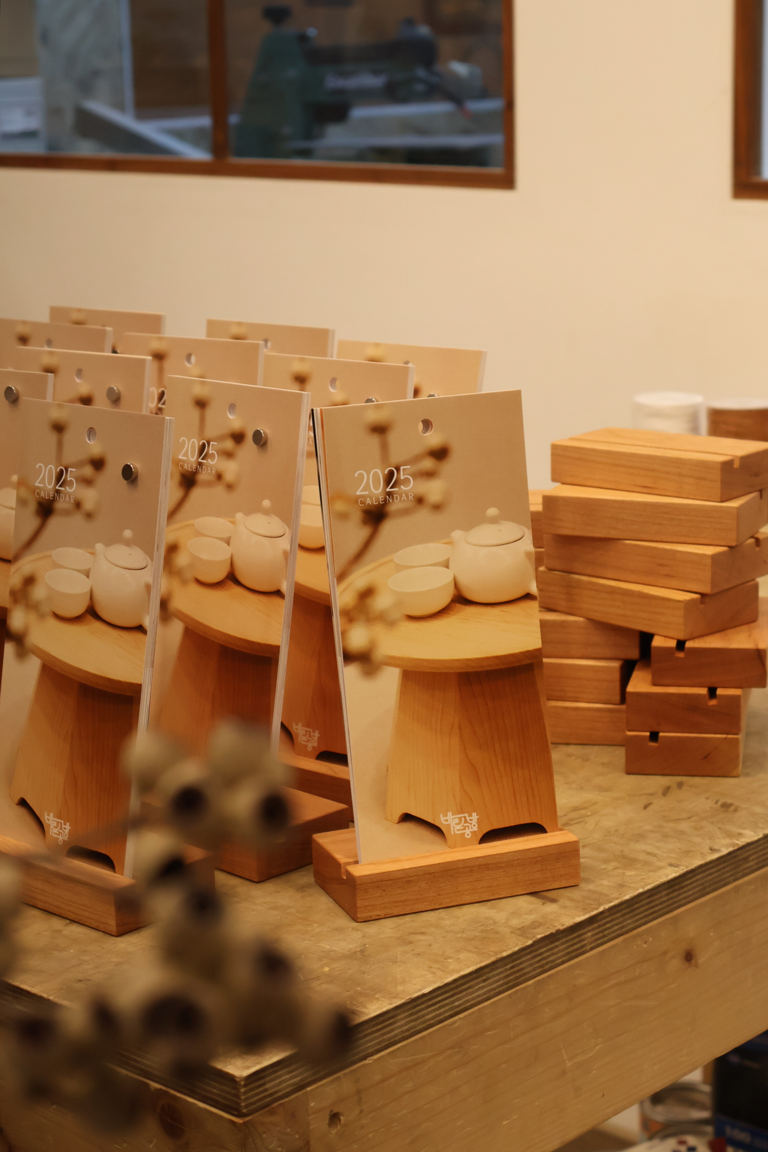 올해도 공방 회원분들을 위한 연말 선물을 준비합니다. 회원분들의 크고 작은 나무 작품을 모아 신년 달력으로 엮었습니다. 어느덧 세 번째 해를 맞이하는 달력 만들기. 체리나무를 자르고 사포질해 달력 받침대를 만들며 감사한 마음을 담습니다. 사진을 고르고 달력에 숫자를 입력하고 인쇄를 기다리며 받침을 하나, 둘 완성하다 보면 함께 수업했던 시간들이 추억으로 새겨집니다. 작품을 만들기 위해 공방을 오가며 보냈던 회원분들의 소중한 시간이 좋은 기억으로 남았으면 좋겠습니다.